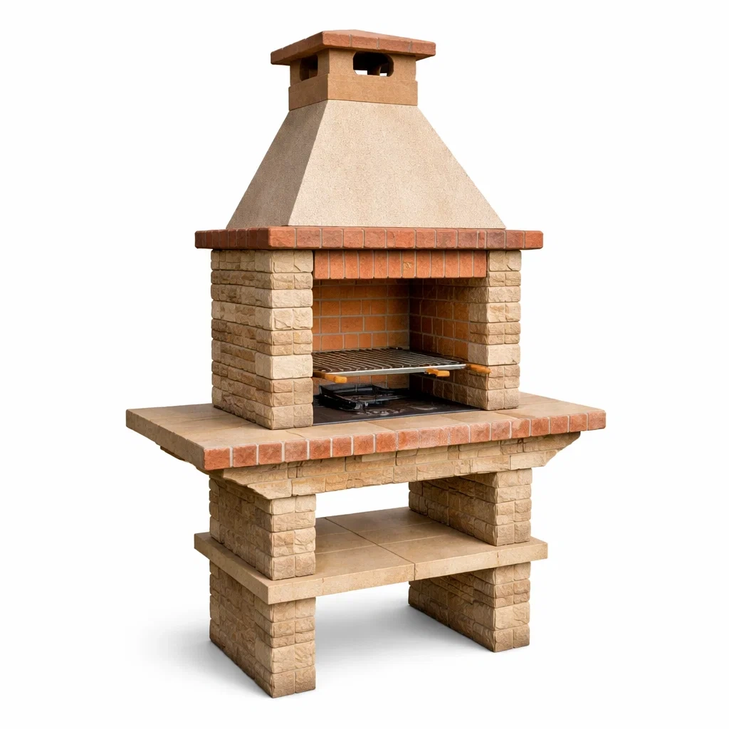 Grillkamin aus Beton Terracotta und Ziegelstein